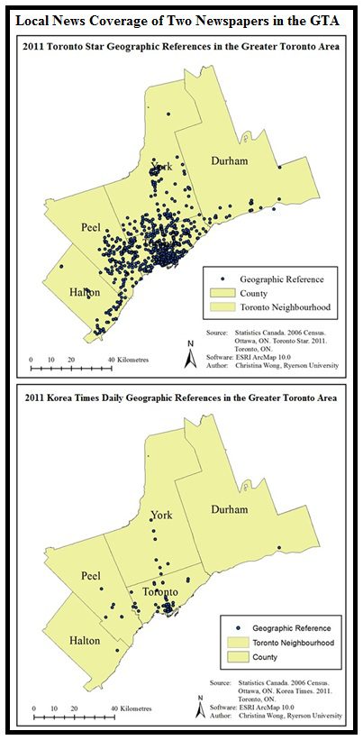 Figure 2. Geography of news comparison of two GTA newspapers